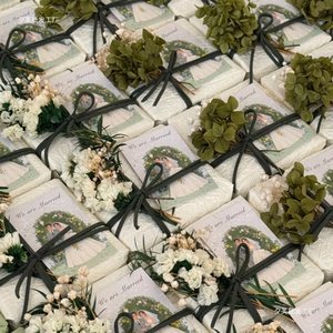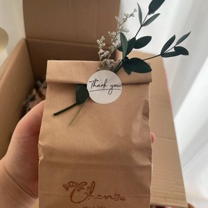 中号随机印花牛色空袋子+感谢圆贴+尤加利叶小叶+情人草一个约23*12*7.5cm