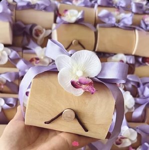 紫色丝带+木皮空盒+蝴蝶兰装饰一个约11.5*9*9CM