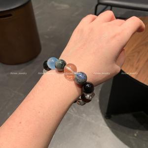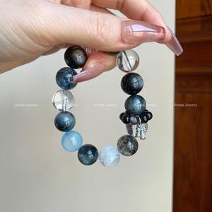 天然水晶マルチストーンブレスレットアクアマリンイーグルアイストーンニッチハイエンドオリジナルデザインブレスレット工場直販