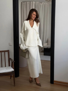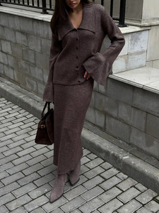 気質小香風Vネックニットカーディガン2点セット春秋新作スリムベルスリーブ医療スカートスーツ