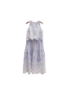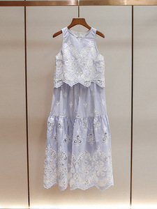 深センNanyouハイエンドレディース夏の新しいスタイルのフランス刺繍中空ベスト+女性用Aラインロングスカートスーツ