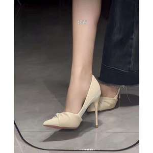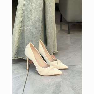 小柄な女性向けの妖精風スティレットハイヒール、2025年新作浅口ニッチデザインのポインテッドトゥシューズ