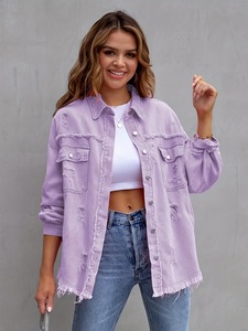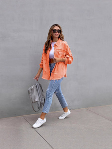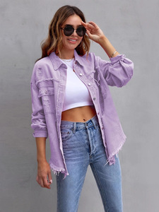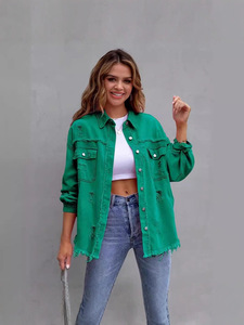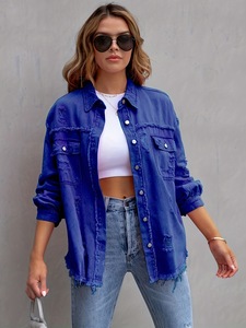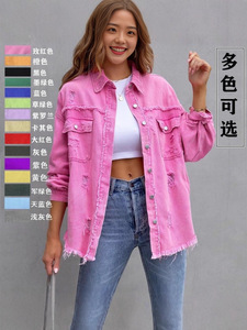 工場直販クロスボーダー新しいアメリカンソリッドカラーミッドレングスリッピング長袖デニムジャケットヨーロッパとアメリカンスタイルの女性用ジャケット