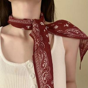 复古安可拉红色腰果花低马尾绑发飘带丝巾女款高级