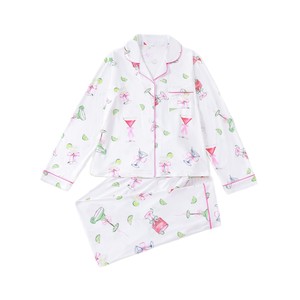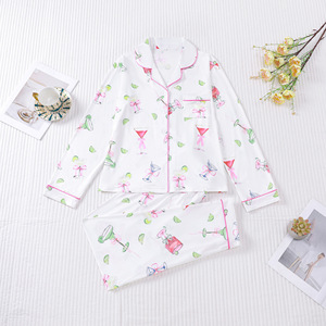 国境を越えた対外貿易人気の女性用パジャマ四季プリントラペル長袖ズボンヨーロッパとアメリカの快適なホームウェアセット