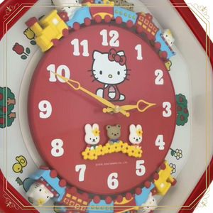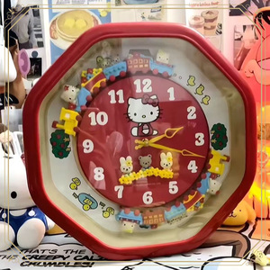 HelloKitty挂钟卡通小火车时钟会开火车的家用HelloKitty时钟挂表