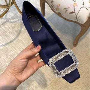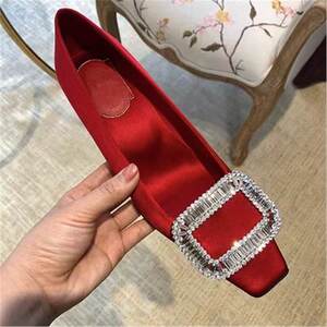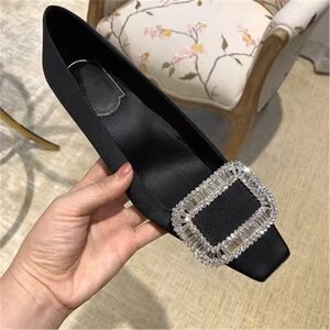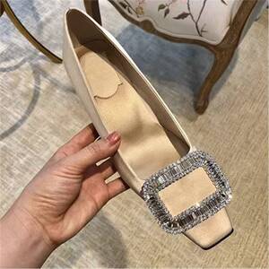 香港2025春夏浅口单鞋船鞋方扣水钻粗跟中跟瓢鞋平跟平底高跟鞋女