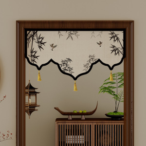 中式门楣帘新中式仿亚麻门帘流苏吊坠遮挡隐私美化环境