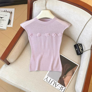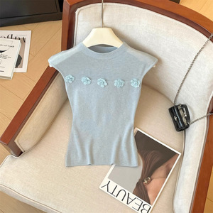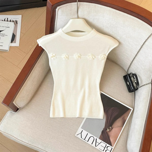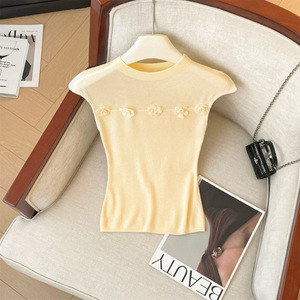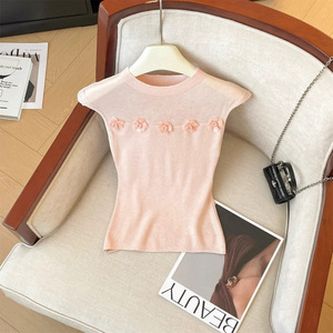 韩版短袖气质针织衫上衣女2025夏季新款时尚洋气减龄修身圆领T恤