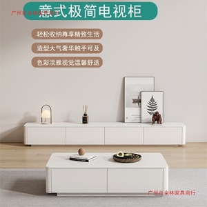 奶油风白色茶几电视柜组合简约现代实木轻奢悬空电视机柜客厅一体