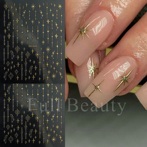 跨境热款美甲贴纸 ins经典色法式线条星芒四芒星太阳之神指甲贴纸