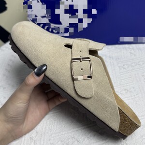 BK勃肯鞋男女软木牛皮钓鱼博肯包头半拖鞋女夏季外穿春秋厚底鞋