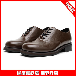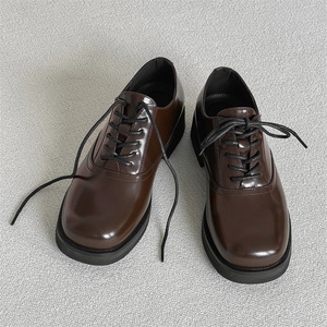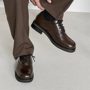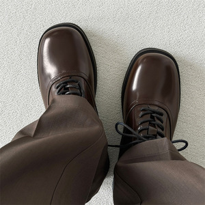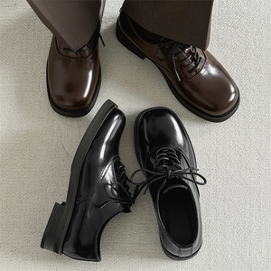 ブラウンスクエアトゥダービーシューズメンズ厚底英国風光沢のあるパテントレザーカジュアルローファー多用途革靴男性用