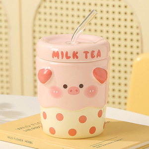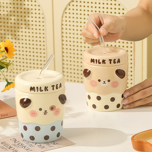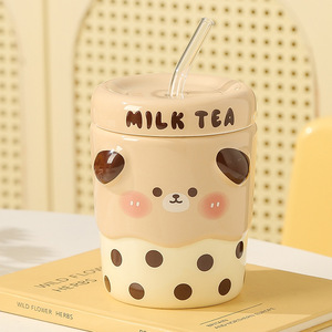 可爱情侣马克杯创意陶瓷杯少女心卡通水杯子家用牛奶早餐杯批发