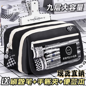 9层超大容量笔袋女生新款文具盒男孩款初中生小学生黑色铅笔盒1