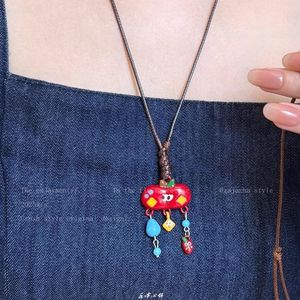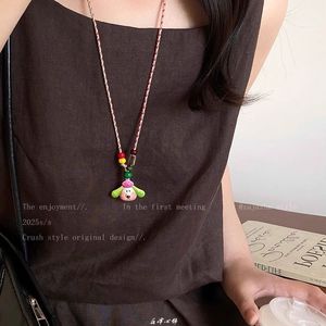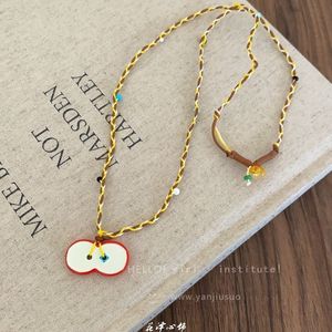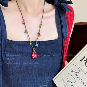 多巴胺卡通彩色苹果流苏编织绳项链女可爱小众长款挂脖毛衣链配饰