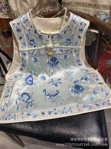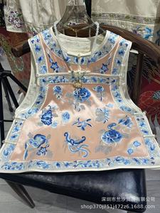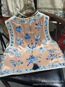 2536 新中国風バックルヘビーアセテートフル刺繍青と白の磁器蝶愛花刺繍ベスト中国風 13 太