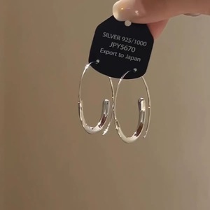 メタルコールドスタイルシルバープレーンフープイヤリング女性用ニッチデザインハイエンドイヤリングパーソナライズされたシンプルな気質イヤリングトレンド