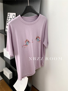 2025夏季63%天丝轻薄印花宽松圆领体恤防晒T恤女慵懒百搭休闲上衣