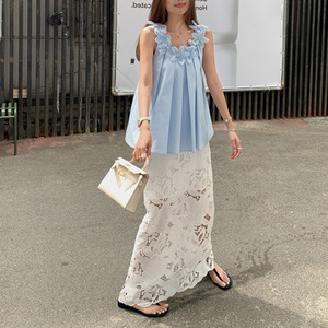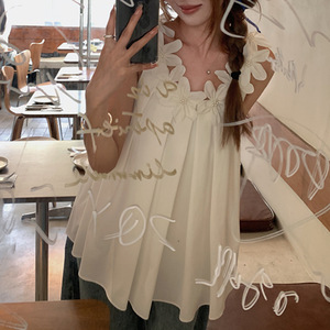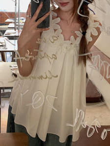 【苏黎白月光】重工立体花朵白色连衣裙女夏无袖吊带裙/上衣系列