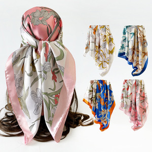 印花包头巾90cm丝巾批发经典花卉大方巾丝巾欧美女士跨境色丁披肩