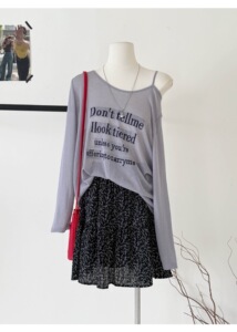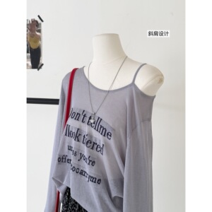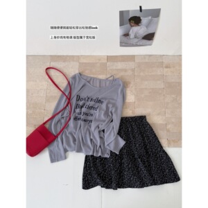 夏季薄款字母挂脖长袖防晒T恤+松紧腰碎花短裙两件套女