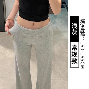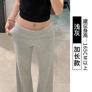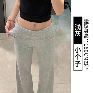女性用グレーフリップウエストマイクロフレアパンツ、夏用薄手のドレープヌードクラウドパンツ、小柄な人向けのスリムフィットスポーツパンツ