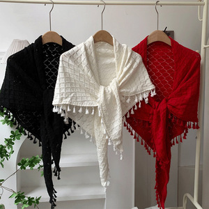 旗袍披肩夏季米白色外搭女针织三角巾披风百搭流苏温柔风保暖开衫