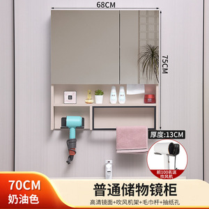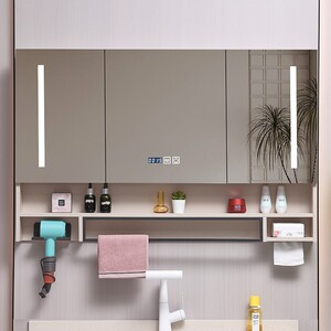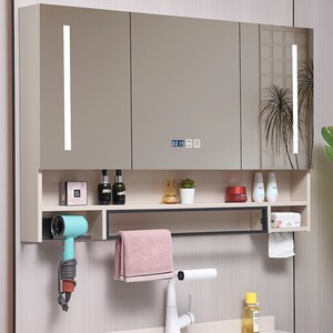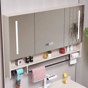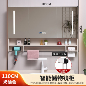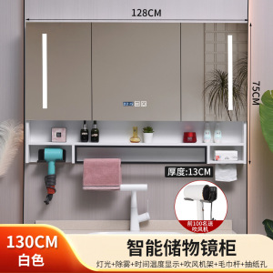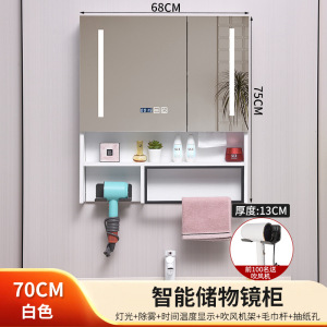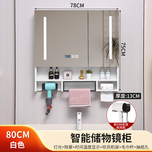 卫生间浴室镜柜带灯智能浴室镜挂墙式洗手间镜子带置物架储物镜柜