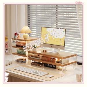 デスクトップコンピュータ高架ラックホームオフィスデスクトップ収納ラックアクリルモニターパッドブラケット