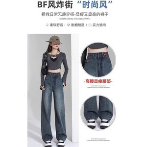 复古阔腿牛仔裤女2025新款春秋小个子窄版显瘦遮肉大码直筒拖地裤