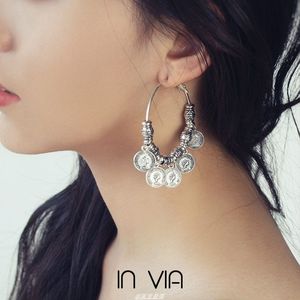 ボヘミアンエスニックスタイルタッセルイヤリング大きなフープ女性のシルバー針馬面スカートジュエリーレトロチベットイヤリング