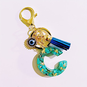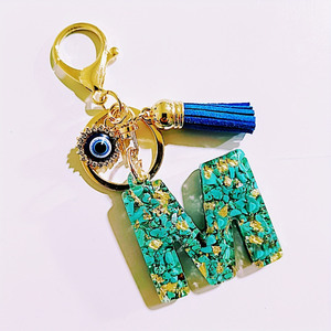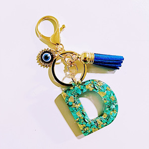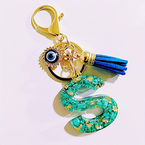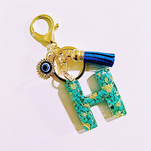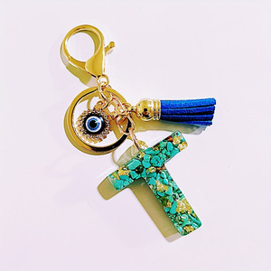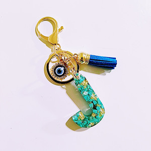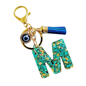 天然砕いたターコイズ接着剤英語アルファベットキーホルダーデビルアイタッセルバッグチャームギフトジュエリー