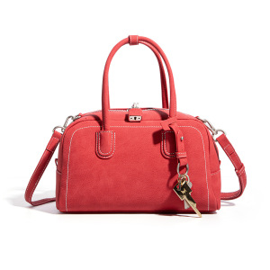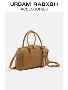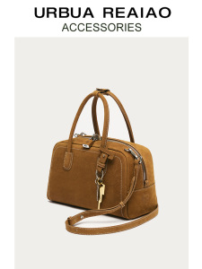 第一層牛革ボストンバッグ女性のための 2025 春の新本革レトロショルダークロスボディバッグポータブルボウリングバッグ