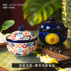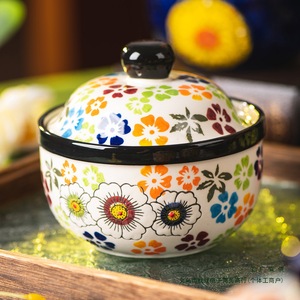 波兰陶瓷小炖盅家用带盖汤盅隔水汤罐蒸蛋碗蒸鸡蛋羹碗甜品碗