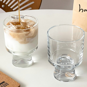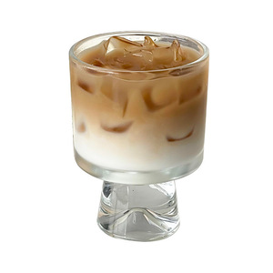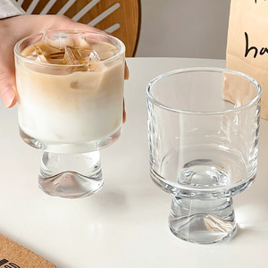 批发高颜值玻璃杯设计小众高脚杯创意果汁杯甜品杯INS风咖啡杯子