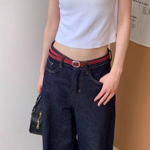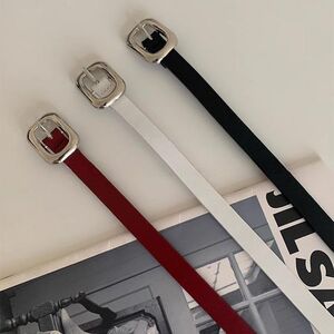 上質でシンプルで高級感のあるシルバーメタルバックルベルトレッドレザーベルトカジュアルで万能な女性用デイリーアクセサリー