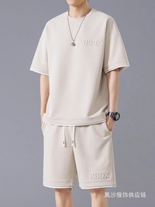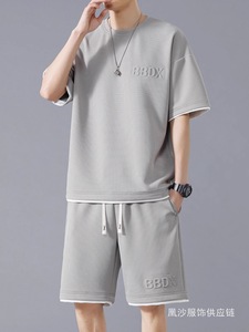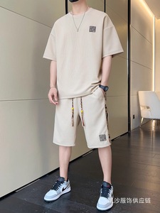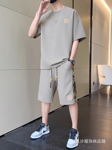 加肥加大码300斤男士搭配帅气短袖休闲套装夏季潮胖子冰丝宽松t恤