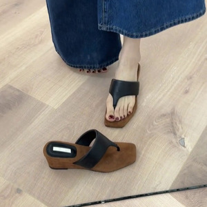 厚底フリップフロップ、レトロミニマリストスクエアトゥビーチサンダル、女性用ウェッジビーチシューズ