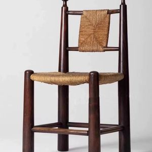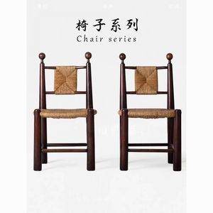 中古实木编藤餐椅复古草藤椅子家用简约民宿咖啡厅休闲藤椅靠背椅
