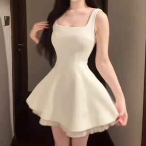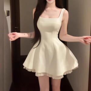 法式甜美方领拼接网纱吊带连衣裙女夏季芭蕾风收腰显瘦蓬蓬公主裙