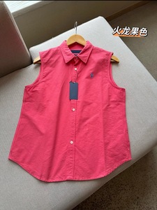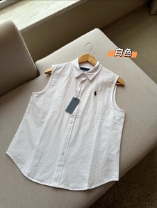 オリジナルラベルスキャン可能/ラフポニーノースリーブオックスフォード布ベストシャツレディースポロカラーオールマッチカジュアルシャツ