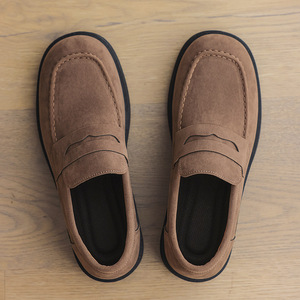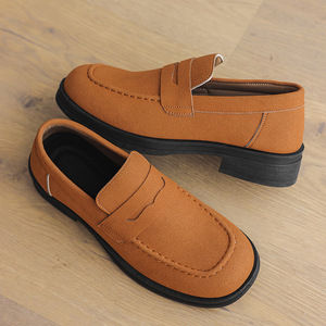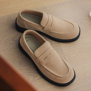 乐福潮鞋男内增高休闲豆豆鞋英伦套脚磨砂尖头皮鞋韩版翻毛皮LF06