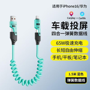 65 ワット多機能データケーブルスプリング伸縮式フォーインワン超高速充電ケーブル Apple Huawei タイプ C バッチに適しています