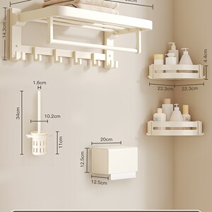 【7点セットA】タオル掛け+三角バスケット*2+ドライヤーホルダー+ティッシュボックス+トイレブラシ+ローフック+タオルバー