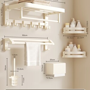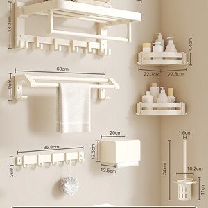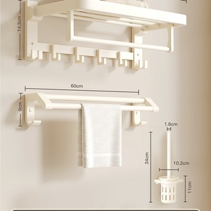 【6点セット】タオル掛け+タオルバー+三脚*2+ティッシュボックス+トイレブラシ+ロウフック