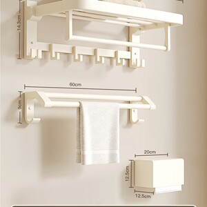 【5点セットA】バスタオルラック+タオルバー+三脚*2+ティッシュボックス+ローフック