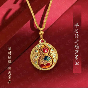 安全な輸送ひょうたんネックレス + 黄色の手作りロープ