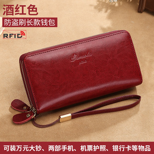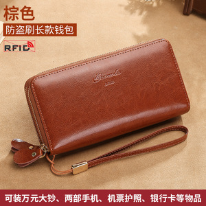 本革長財布 2025 新しい女性のハンドヘルド財布カードホルダーオールインワン大容量ダブルジッパー財布携帯電話