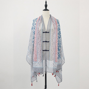 スカート付き夏用ショール、夏用プリント、新しい中国風のボタン付きシルクスカーフ、日焼け止めショール、小さなチョッキ付き